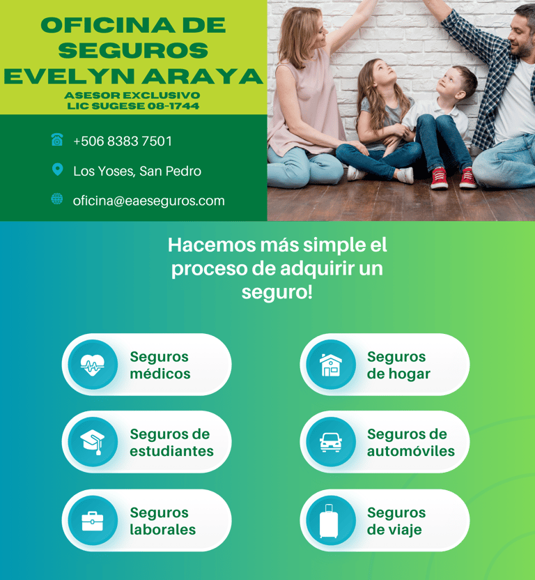 En Oficina de Seguros Evelyn Araya, ofrecemos una amplia gama de seguros del INS en Costa Rica, incluyendo seguros médicos, de hogar, automóviles y más.